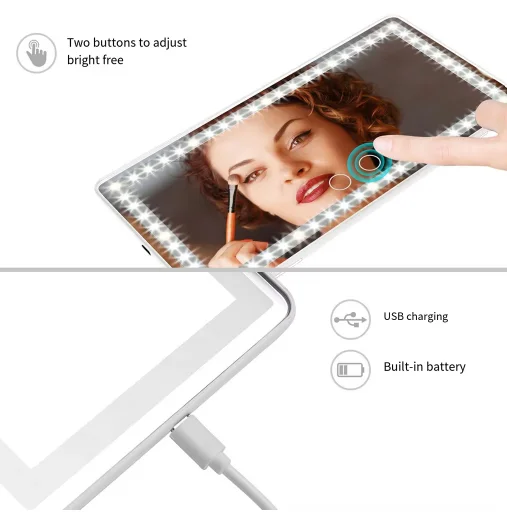 مرآة مستحضرات التجميل مع الضوء+حقيبة مكياج محمولة