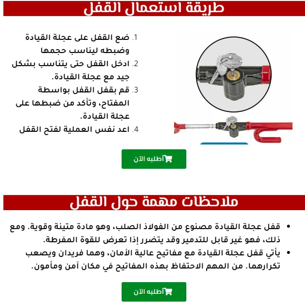 - قفل عجلة القيادة هو الحل ألامثل لسيارتك، ويوفر حماية موثوقة من السرقة